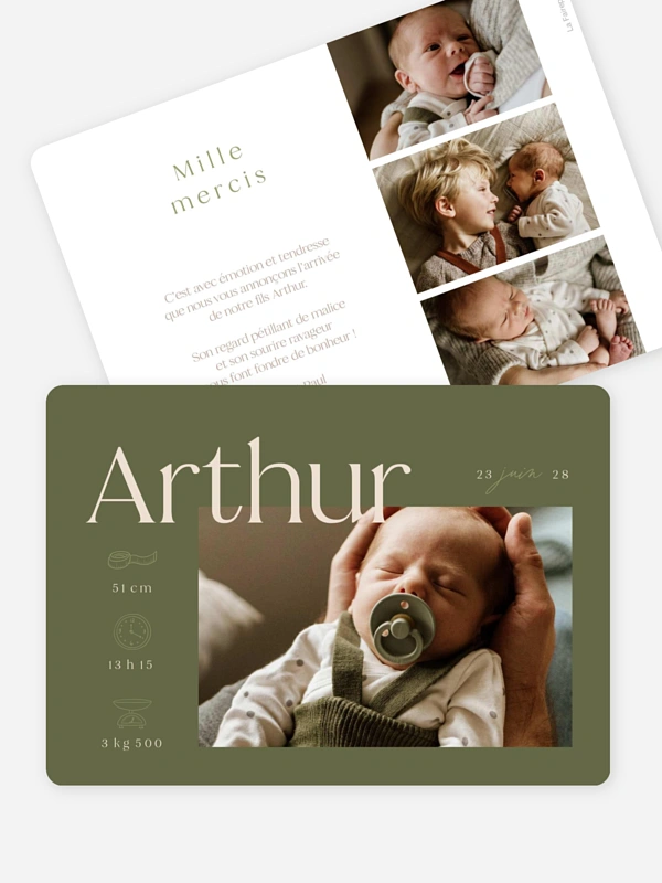Le faire-part de naissance "La magie de la vie" capture avec douceur ces premiers instants où tout bascule, où l’amour prend une nouvelle dimension. Son style chaleureux et naturel accompagne à merveille vos plus belles photos et les premières informations de votre bébé. Une carte pensée pour remercier, raconter, et faire sourire ceux qui comptent.