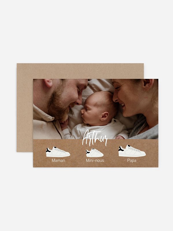 Une jolie carte naissance à personnaliser avec les photos de votre bébé. Douce et classique, le faire-part de naissance "Mini-nous" vous enchantera.