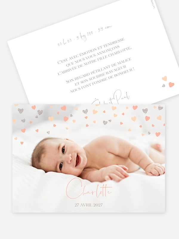 Douce et colorée, la carte naissance "Pluie d'amour" ne pourra que vous plaire et ravir vos proches.