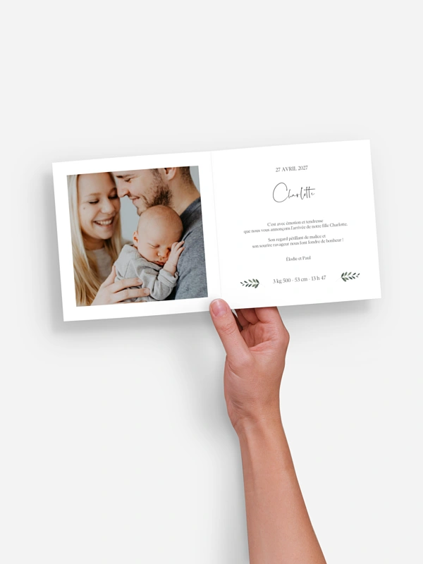 "Les faire-part sont juste magnifiques avec une grande qualité d'impression. Rapidité d’exécution et de livraison. Super, à recommander!" (Gaëlle)