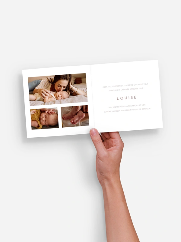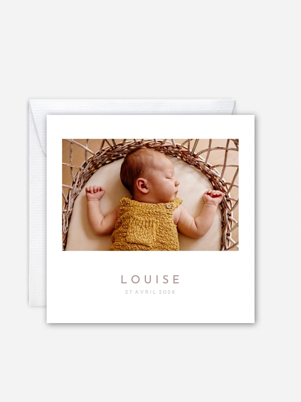 Annoncez la venue au monde de votre petit trésor avec toute la tendresse que mérite cet événement unique grâce à notre carte de naissance "Douce élégance". Ce modèle met joliment en avant la toute première photo de votre bébé pour créer un souvenir ému que vos proches chériront longtemps. Pour vous accompagner sereinement dans cette étape, nous vous offrons la possibilité de commander une carte dechantillon gratuite afin de confirmer votre coup de cœur. Profitez également de notre service de retouche inclus pour une mise en page soignée et une impression de haute qualité. Personnalisez votre annonce en quelques clics pour partager votre bonheur avec ceux que vous aimez.