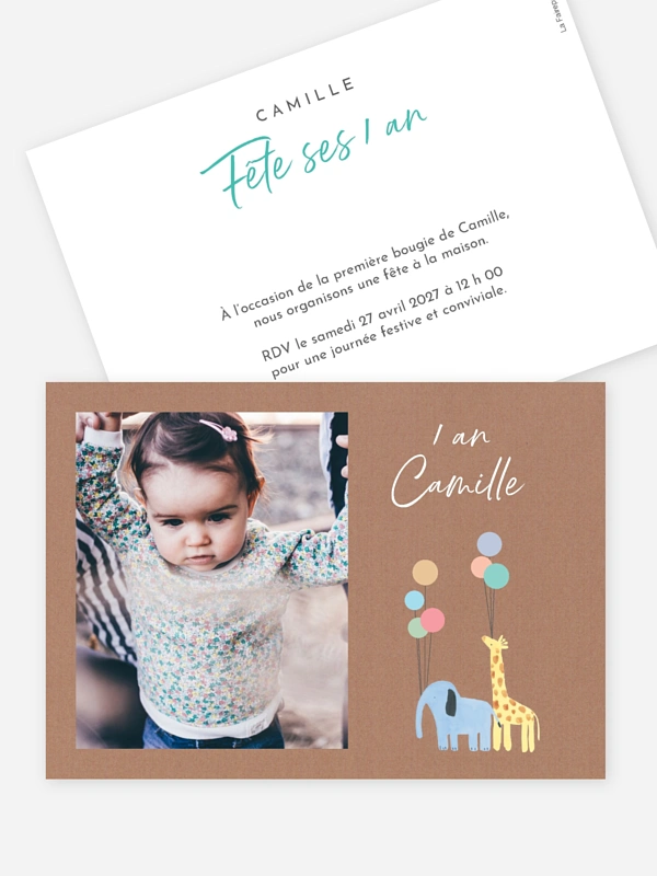 La carte invitation anniversaire enfant "Happy Balloons" avec ses jolis animaux ainsi que ses ballons rigolos séduira tous les amis de votre enfant.