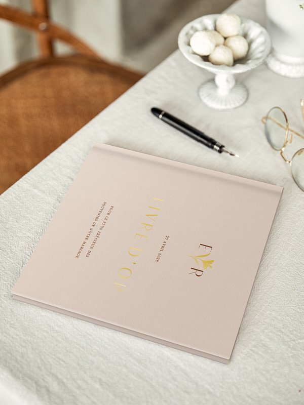 Gardez un précieux souvenir de votre mariage avec le livre d'or mariage "Élégant Monogramme". Vos invités pourront y laisser petits mots, dessins et photos. Les pages intérieures sont lisses et blanches. Vos invités pourront écrire leurs mots au stylo, feutre ou marqueur sans problème de transparence. NB : La couleur mentionnée dans la description ou dans la sélection de papier n’est pas représentative du rendu imprimé. Le produit aura un rendu conforme au visuel dans l’outil de personnalisation. La dentelle représentée n'est qu'un effet imprimé. Le livre d’or sera reçu dans un colis séparé du reste de votre commande.