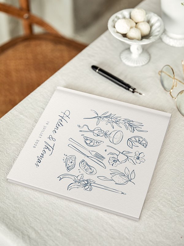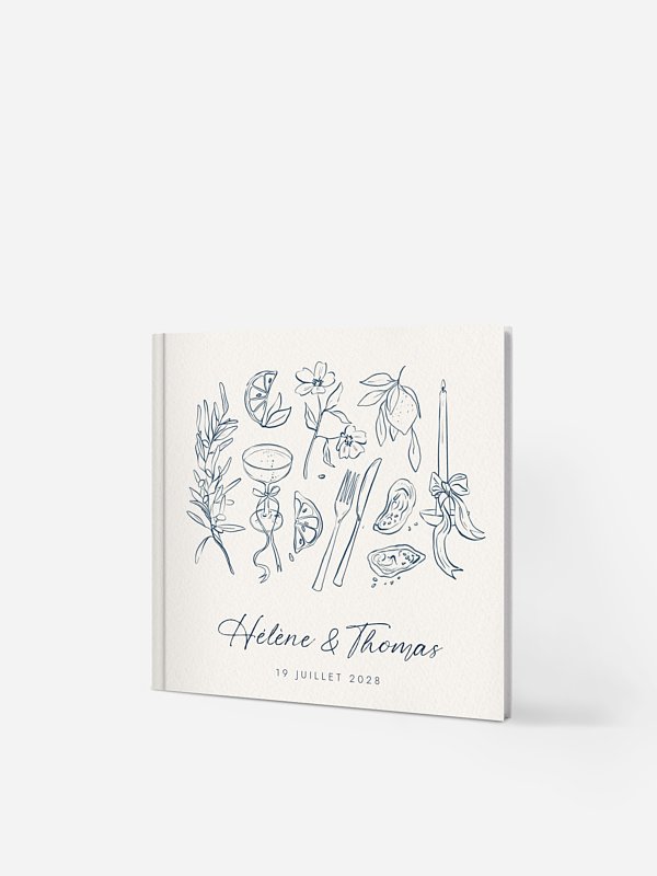 Gardez un précieux souvenir de votre mariage avec le livre d'or mariage "Méditerranéen". Vos invités pourront y laisser petits mots, dessins et photos. Les pages intérieures sont lisses et blanches. Vos invités pourront écrire leurs mots au stylo, feutre ou marqueur sans problème de transparence. NB : La couleur mentionnée dans la description ou dans la sélection de papier n’est pas représentative du rendu imprimé. Le produit aura un rendu conforme au visuel dans l’outil de personnalisation. La dentelle représentée n'est qu'un effet imprimé. Le livre d’or sera reçu dans un colis séparé du reste de votre commande.