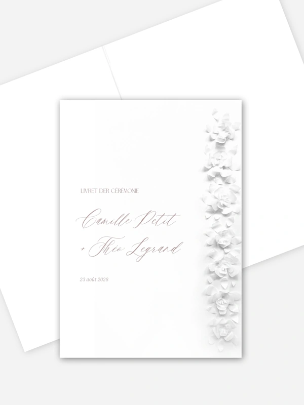 Le livret de messe mariage "Poème sur papier" habillera joliment vos textes et chants religieux. Il apportera une note unique à votre cérémonie de mariage.