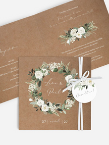 Faire-part de mariage fleurs blanches et verdure