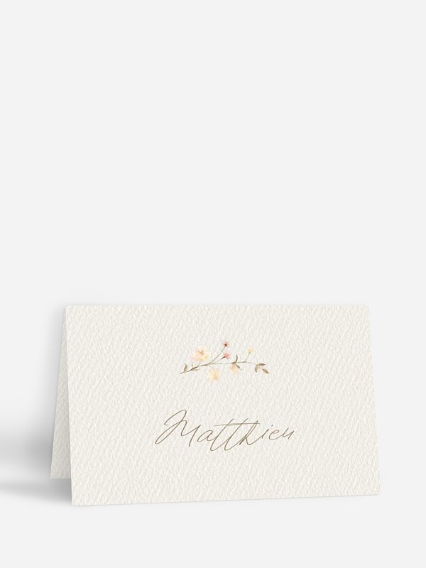 Avec le marque-place baptême "Promesse fleurie", chaque invité trouve sa place tout en douceur, et votre table prend tout de suite un air de fête. Le petit motif délicat et la typographie légère apportent une touche tendre, idéale pour un repas de baptême plein de chaleur. Parfait pour compléter votre décoration de table de baptême et créer une jolie harmonie avec votre papeterie. Vous le personnalisez en quelques clics dans notre outil de création, puis nous nous chargeons d’une impression soignée et d’une livraison rapide.
