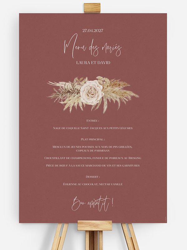 Un vrai régal pour les yeux ! Le joli poster menu de table "Terracotta Lovers" annoncera le repas à vos invités.