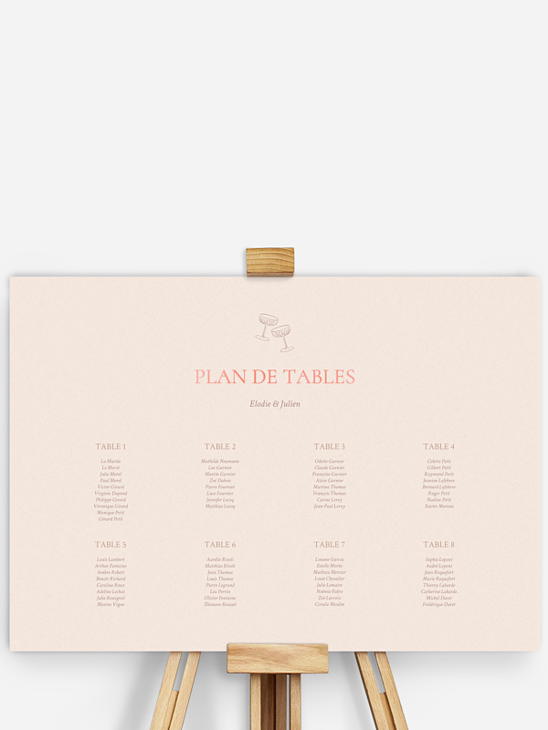 Avec le joli poster plan de table mariage "Histoire d’amour", indiquez à vos convives à quelle table ils sont placés en un seul coup d'oeil.